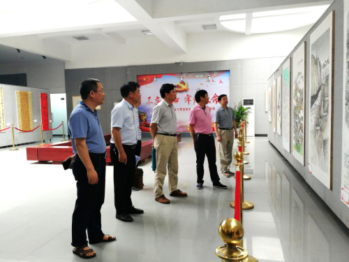 7月12日上午,校党委书记郭军、校长刘和云、党委副书记刘铁铭、副校长石潇纯、纪委书记杨鑫铨与宣传统战部、美术与设计学院相关负责人一行来到逸夫楼二楼展厅参观了“不忘初心,牢记使命”KY开元集团官网入口学习贯彻党的十九大精神书画展。