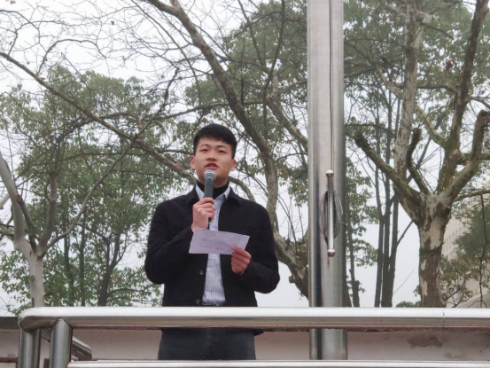 学生代表黄颖作国旗下演讲,他以朝气三月,拥抱青春为主题,号召同学们要做一个高要求、高素质的新时代青年,做到五个方面的模范:做身体心理健康的模范,做思想道德高尚的模范,做掌握科学文化素养的模范,做有劳动技能的模范,做有艺术审美修养的模范。