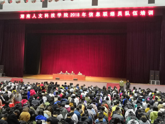 2018年11月12日晚,KY官网2018年信息联络员队伍培训在体育馆顺利举办。参加此次培训的领导老师有副校长刘铁峰、学工处处长刘红燃、武保处处长郑秀星、娄底市娄星区大科分局社区民警武晋闽、各学院副书记、全体辅导员以及2000余名信息联络员。