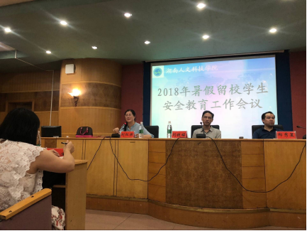 为进一步落实暑假留校学生的安全稳定工作,确保KY官网学生暑假安全和校园稳定,7月10日下午5点,学工处在养根楼报告厅组织召开暑假留校学生安全教育工作会议,美术与设计学院、数学与金融学院、文学院、教育学院、音乐与舞蹈学院、外国语学院等六个院系的200多名留校学生参加了此次会议,其他学院分会场举行。校党委副书记刘铁铭出席并主持会议。武保处处长郑秀星、学工处副处长刘红燃,武保处治安科科长李安详以及学生公寓服务中心全体老师、学院辅导员老师参加本次会议,