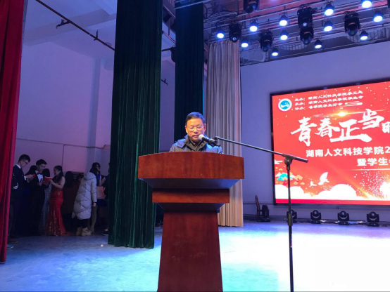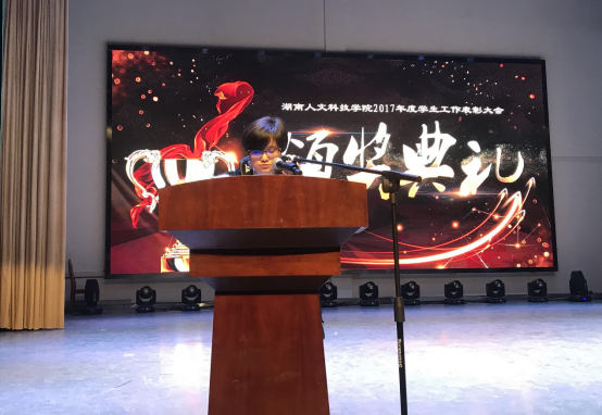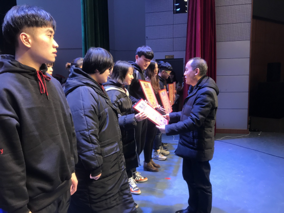 学工处处长余为致开幕辞,他对学生会2017年工作取得的良好成绩给予了充分肯定,希望大家再接再厉,再创辉煌,并预祝晚会圆满成功、全体师生新年快乐。学工处副处长邓南南宣读了表彰文件。。校党委委员、副校长刘铁峰教授、学工处余为处长及刘红燃副处长为获奖同学颁奖。