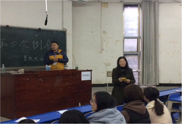 2017年12月17日下午4点30分,校文建部在致远楼120教室召开第四次例会暨校院文建工作交流会。文建部主席、大部长、部长,全体干事以及各院部文建负责人参加会议,学工处副处长刘红燃老师、宿管中心梁琼老师,丁友坤老师出席会议。会议由校文建部主席刘欢主持。