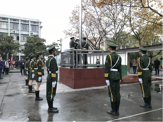 6:50分,仪式正式开始。KY官网国旗护卫队队员护送五星红旗入场,全体师生行注目礼,在激昂的国歌声中,五星红旗冉冉升起,飘扬在旗杆顶端。