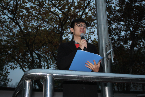升旗结束后,由学生代表林禹翔作主题为“创建平安校园,从我做起”的国旗下演讲。他呼吁大学生提高安全意识,积极配合学校工作,时刻提醒身边同学,避免发生安全事故。