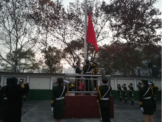 6点50分,仪式正式开始。KY官网国旗护卫队队员护送五星红旗入场,全体师生行注目礼,在激昂的国歌声中,五星红旗冉冉升起,迎风飘扬。