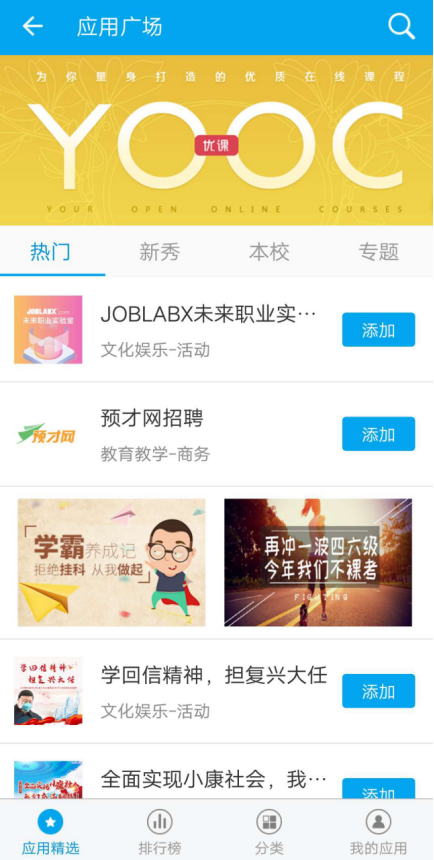 一、打开“易班”APP,点击进入“应用广场”;