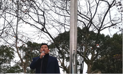 升旗仪式后,来自材料与环境工程学院2018级学生代表做“安全”在心,警钟长鸣的主题演讲。“安全”问题看起来遥不可及但其实它就在大家身边。因此,我们每一位同学都应引起重视,把安全置于心中。