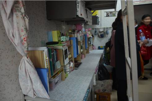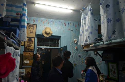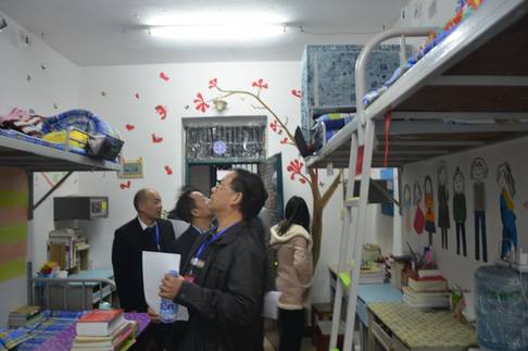 各领导老师走访参观了共25间寝室。老师们对同学们丰富多彩的寝室文化、极具创新性和改造性的寝室设计、整洁大方的寝室环境、温馨和谐的寝室氛围称赞不已。每个寝室都窗明几净,物品摆放秩序井然、有条不紊,书桌床铺整洁有序,加上寝室内部的整体装饰,包括墙壁和天花板的墙纸,手工制品的展示,书画作品的张贴,照片墙等,给人一种充满活力和朝气,充满自信和自律,赏心悦目的感觉。