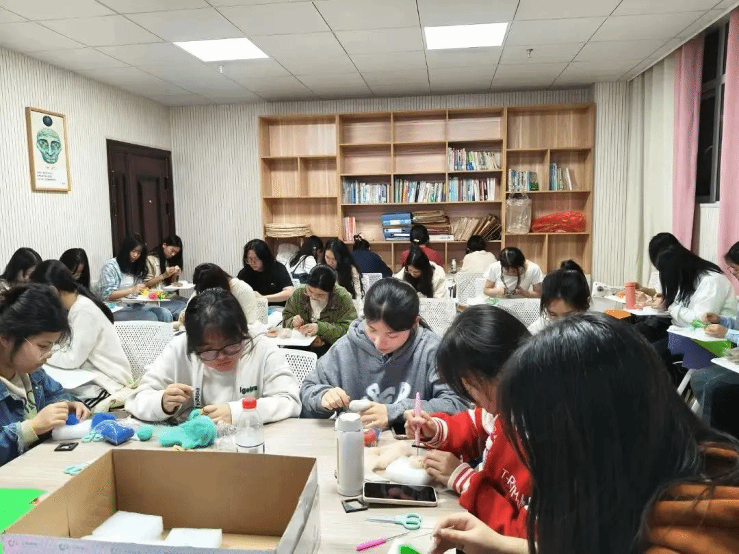 活动伊始,工作人员向同学们介绍了心理中心的相关信息,帮助同学们深入了解学校的心理健康资源。随后三大特色手工工坊同步开放:“像素工坊”里,同学们将彩色珠子巧妙组合,拼接出独具个性的心灵画卷;“绒趣工坊”中,大家通过戳制毛毡作品释放压力,体验专注与放松的愉悦;“黏土工坊”内,柔软的黏土在指尖塑形,成为情感表达的艺术载体。活动现场氛围轻松热烈,同学们在手工制作中疗愈心灵、收获快乐。