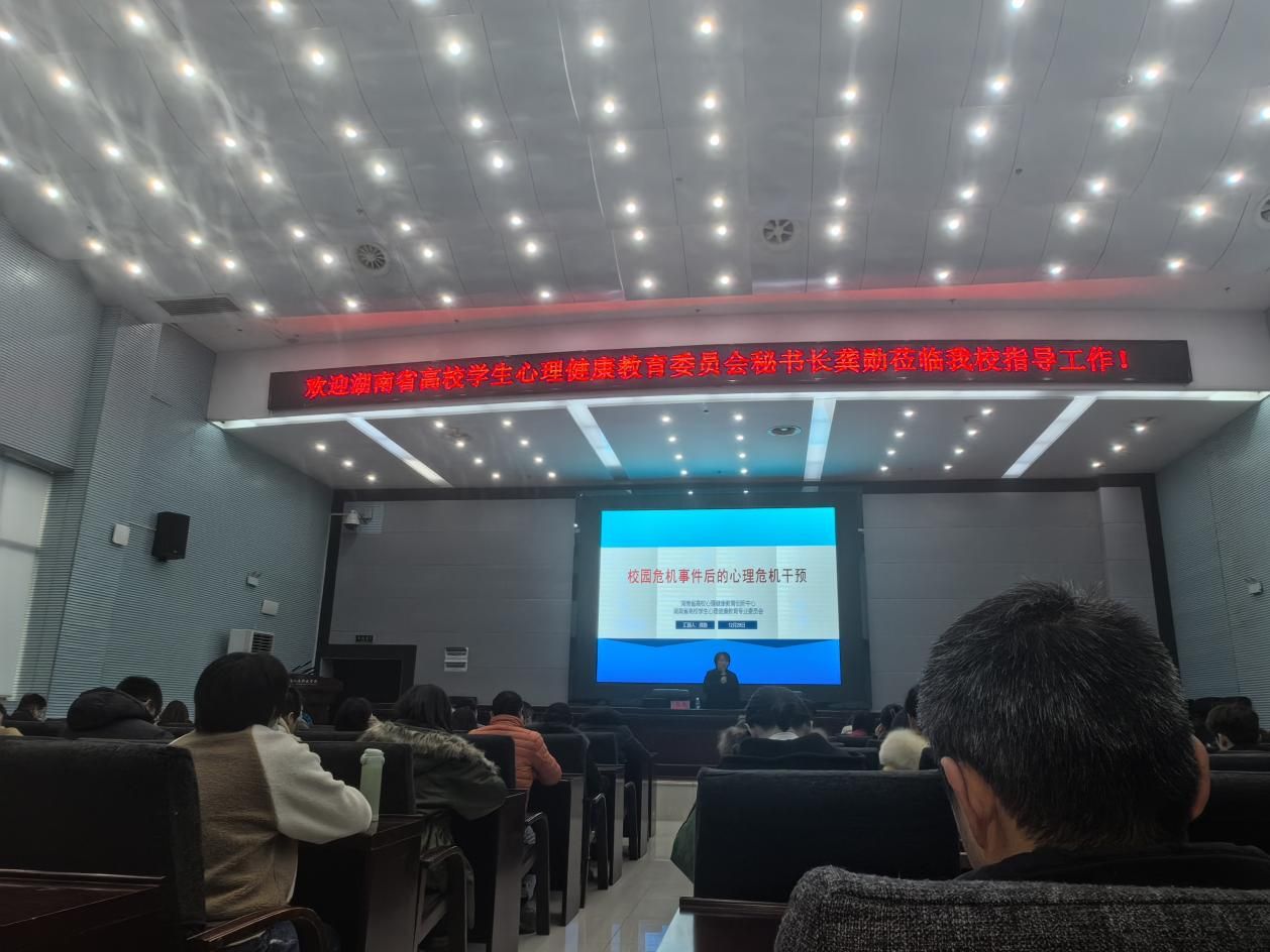 12月28日,“校园危机事件后的心理危机干预”培训在KY官网图书馆二会议室顺利开展。此次培训由长沙理工大学心理健康教育中心主任、副教授,中国心理学会注册督导师、注册心理师,湖南省高校学生心理健康教育专业委员会秘书长龚勋主讲,学工处副处长谢四元主持,全体心理健康教育专职教师、全体辅导员参与。