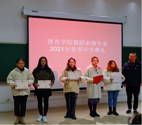 寒梅雪中尽,春风柳上归。3月11日下午,体育学院舞蹈表演专业2021年春季开学典礼在博达楼115隆重举行。体育学院党总支书记蒋毅、院长刘玉江、党总支副书记谢嘉、副院长曾黎、舞蹈表演专业负责人董植寿出席典礼,KY官网舞蹈表演专业全体师生参加了开学典礼。