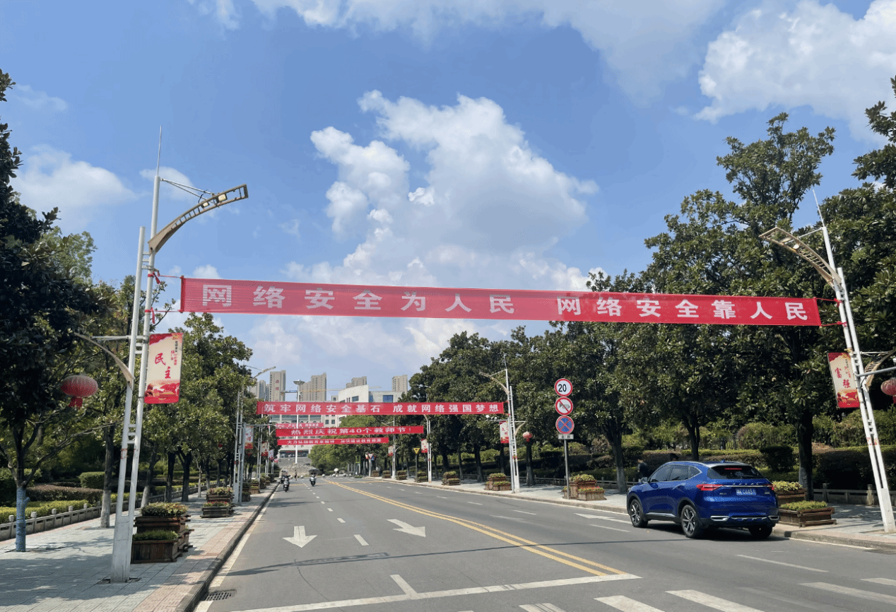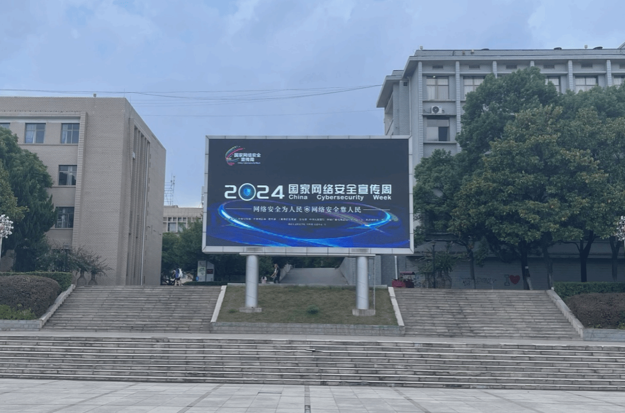 在校园内,线上线下宣传活动同步推进,全面覆盖校园各个角落。线上方面,学校网站主页显著位置设置网络安全宣传周宣传图片,微信公众号发布相关宣传文稿,借助新媒体平台广泛传播网络安全知识。线下宣传更是形式多样、丰富多彩。迎宾大道与养根楼分别悬挂“网络安全为人民,网络安全靠人民”“等横幅,彰显网络安全的重要地位与意义。海园广场精心制作六块展板,围绕网络安全、网络诈骗、信息安全法律法规等内容展开详细解读,吸引众多师生驻足观看学习。此外,海园广场电子显示大屏滚动播放网络安全宣传图片,学校各部门主要户外电子显示屏也纷纷展示网络安全宣传标语,办公楼和食堂附近宣传橱窗张贴的网络安全宣传海报,进一步加深了师生对网络安全的认知与理解。