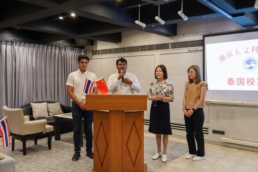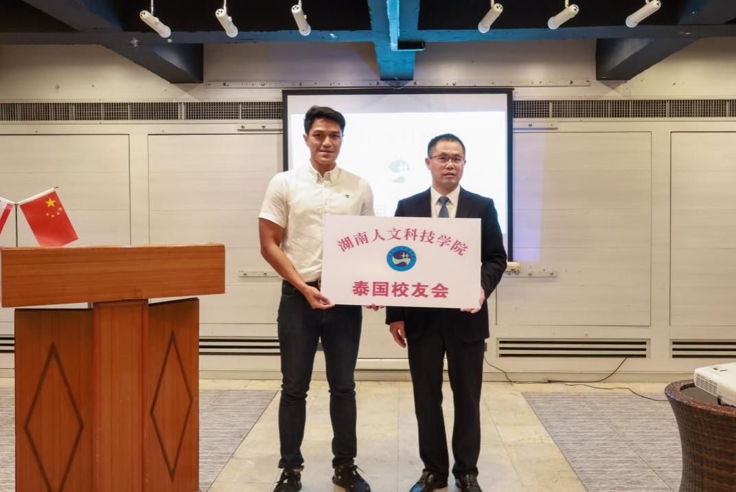 陈勇对精心筹备泰国校友会成立的校友们致以衷心的感谢,介绍了母校近年来的建设与发展,不断为校友蓄势赋能。他表示泰国校友会的成立促进了学校国际文化和教育深度融合,是学校推进国际化办学的一件大事,将架起海内外校友之间交流、互助与合作的桥梁,将托起校友与母校之间情怀激活的平台,更将示范引领海外校友会的发展与壮大。希望校友们发扬“谋近以致远,养根而俟实”的校训精神,以"敢教日月换新天”的勇气,在各自的领域中展翅翱翔,建功立业,共同谱写人文学子海外荣光,共同奏响中泰两国友谊、交流与合作的“命运共同体”之歌。