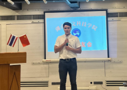 泰国校友会会长泰宝发言,他衷心感谢母校为泰国校友搭建交流互助平台。作为会长,他表示将全力支持这项工作,希望将泰国校友与母校紧密凝聚在一起,发挥校友会聚集人才和资源的作用,为中泰交流发展贡献力量。