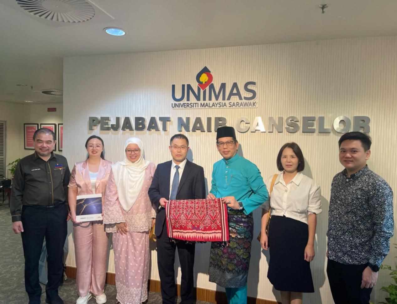 在访问马来西亚沙捞越大学期间,陈勇一行参观了校园,与沙捞越大学校长Ahmad Hata Rasit教授,副校长Fitri Suraya Mohamad教授,国际部主任Thian Foong Fatt教授,经济与商业学院首席执行官Fuah Chin Hong教授,应用与创意艺术学院高级讲师、研究生辅导项目协调专员Connie Lim Keh Nie博士等进行了座谈,深入了解了两校的优势学科和国际化办学情况,并就双方教师交流、科研合作、学生联合培养等内容进行了探讨协商,达成了合作意向。