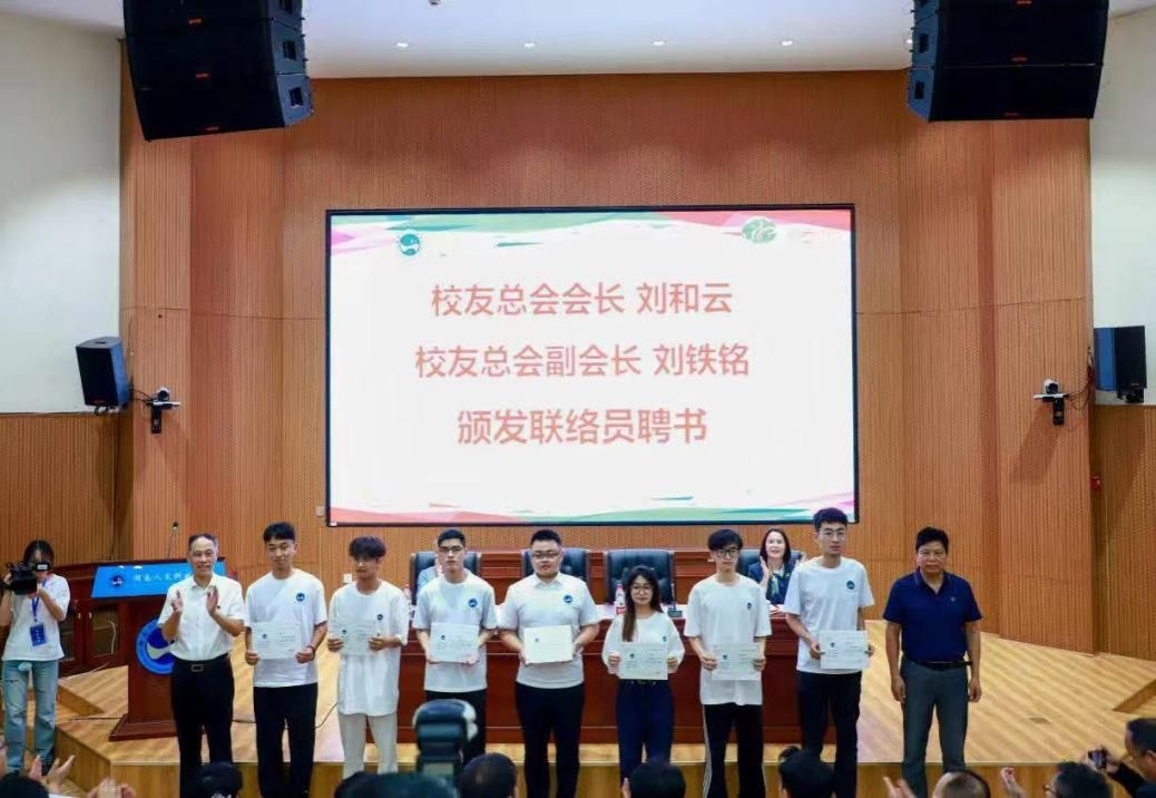 (校友总会会长刘和云、副会长刘铁铭颁发联络员聘书)