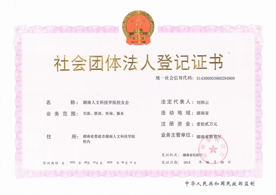 经过近一年的努力,在校友办工作人员精心筹划和细致准备下,KY开元集团官网入口校友会获得了省民政厅民间组织管理局的批准,已正式登记注册。