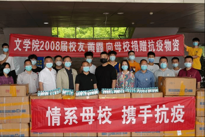 因为疫情原因,现为义乌市欧璟家居用品有限公司法定代表人的欧阳利国校友和国金证券股份有限公司衡阳分公司法定代表人的黄鑫校友没能来到捐赠仪式现场,他们委托文学院院长倪正芳转达对母校师生尤其是文学院师生的牵挂,并祝愿母校早日战胜疫情、恢复正常教学秩序。来到现场的小马驹文化传媒公司法定代表人刘毅校友表示,疫情发生以来,他一直挂念着母校,这次他和往届文学院篮球队队友联系捐赠了一批防疫物资,希望能为学校防疫工作尽一份心、出一份力。