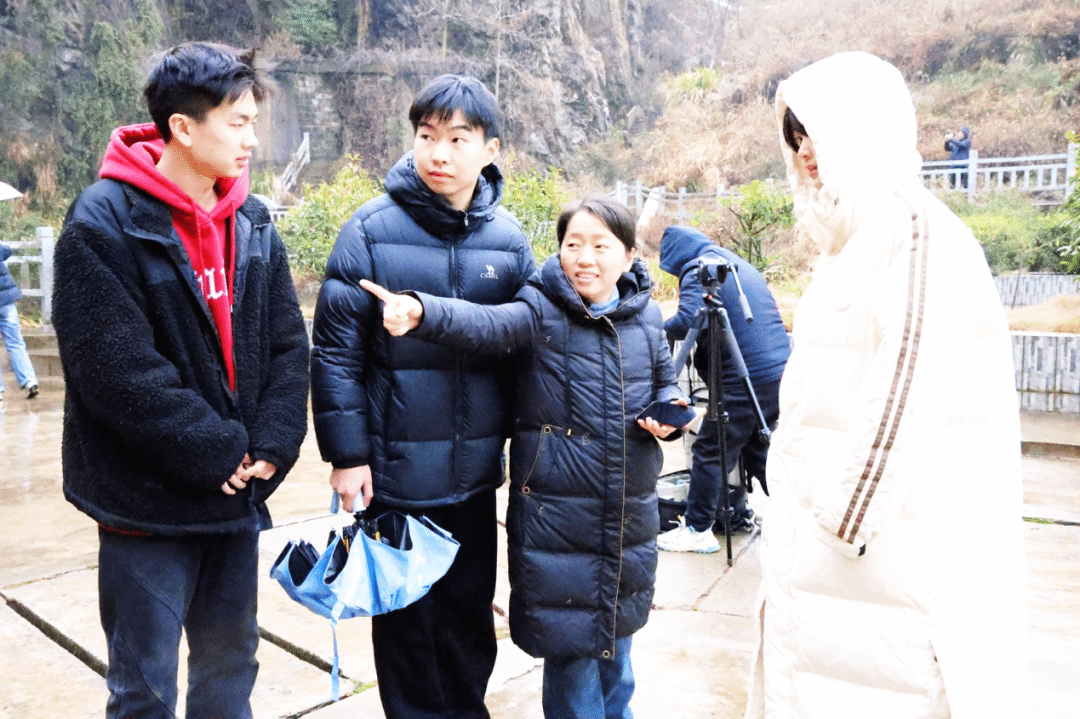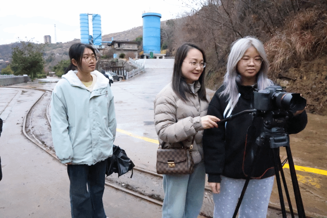 照片中,马克思主义学院张娟老师正指导学生实践团队在冷水江锡矿山进行一堂红色工矿主题思政课的拍摄。尽管天空阴沉,但她始终面带微笑,眼神中流露出无尽的温暖与坚定。她耐心地指导学生们如何在雨中捕捉美丽的瞬间。雨水打湿了她的衣衫,但她毫不在意,全神贯注于教学的每一个细节。