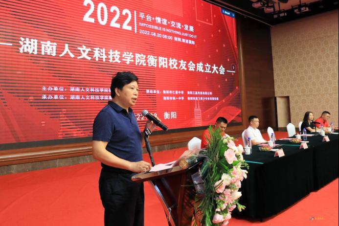 会上,曹鑫为衡阳校友会授牌,胡红波代表衡阳校友会接牌。兄弟校友会代表、长沙校友会副会长阳凌发表了热情洋溢的讲话,向衡阳校友会成立大会的胜利召开表示热烈的祝贺。衡阳校友会首任会长胡红波发言,他对母校的关心和支持、校友的信任与厚爱表示感谢。他表示将会履行会长职责,充分发挥校友会的桥梁作用,不断增进校友与母校的情谊,实现互利共赢,同时加深校友交流,相互促进,彼此成就,更好地为母校和校友的发展服好务。