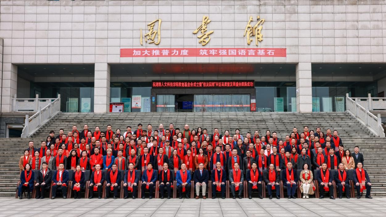 冬日暖阳,情谊绵绵。12月8日上午,学校在匠成楼报告厅举行教育基金会成立大会。中国科学院院士、化学80级校友卿凤翎,湖南大汉集团董事长、数学78级校友付胜龙,泰国校友会等海内外各地校友代表,湖南省教育厅学生处处长、推进“校友回湘”工作专班执行主任周韶峰,湖南省民政厅社会组织管理局局长欧阳标等省、市相关部门领导及特邀嘉宾,全体校领导出席。