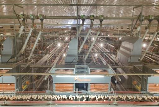 随后,我们参观了新型现代化养鸡场地。整个生产车间只有鸡蛋分拣环节有工人进行操作,饲料通过传输带运送,实现了生产过程全自动化。公鸡和母鸡配比为1:9,以确保产出更优质的鸡蛋。鸡粪通过传送带运送至发酵车间,做成有机肥,为种植户提供肥料,既实现变废为宝,又避免了对环境的污染。
