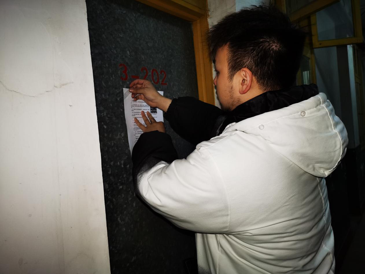 | 图四 研究生会副主席对无人的寝室进行“三防”宣传单的张贴 |