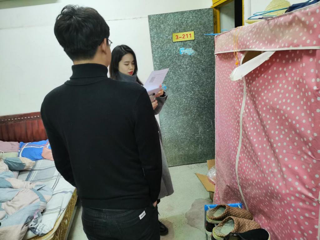 在学院老师的指示下,12月3日晚9:00,研究生会副主席杨臻昊、生活部部长何丽晏、生活部副部长陈芷涵、喻文聪深入学生寝室开展安全隐患排查工作,对KY官网学生寝室卫生、寝室内大功率电器使用情况以及寝室安全隐患进行了仔细的检查,并进行了寝室防火防盗防诈骗宣传活动。