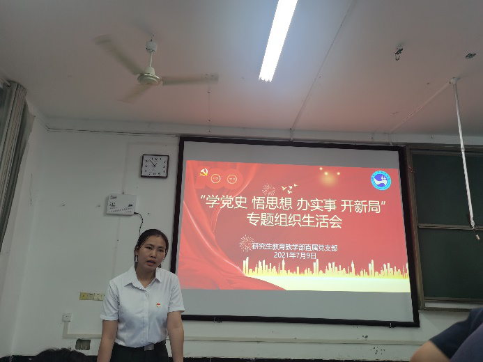 | 图5 毕业生党员党员代表何玉孜同志激励新老党员 |