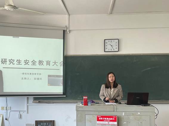 最后,彭健民主任总结:全体研究生要从思想认识层面高度重视安全工作,牢固树立安全意识,查找发现隐藏在日常生活中的不安全因素;研究生教育教学部要积极落实各项工作制度,及时研判研究生安全工作事项,消除安全隐患,共同营造平安和谐向上的良好校园氛围。