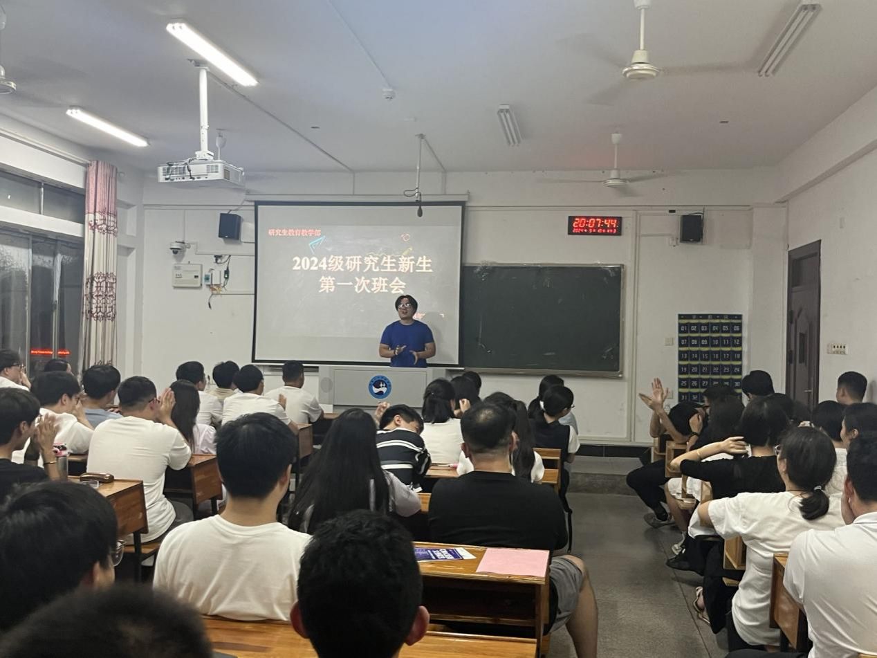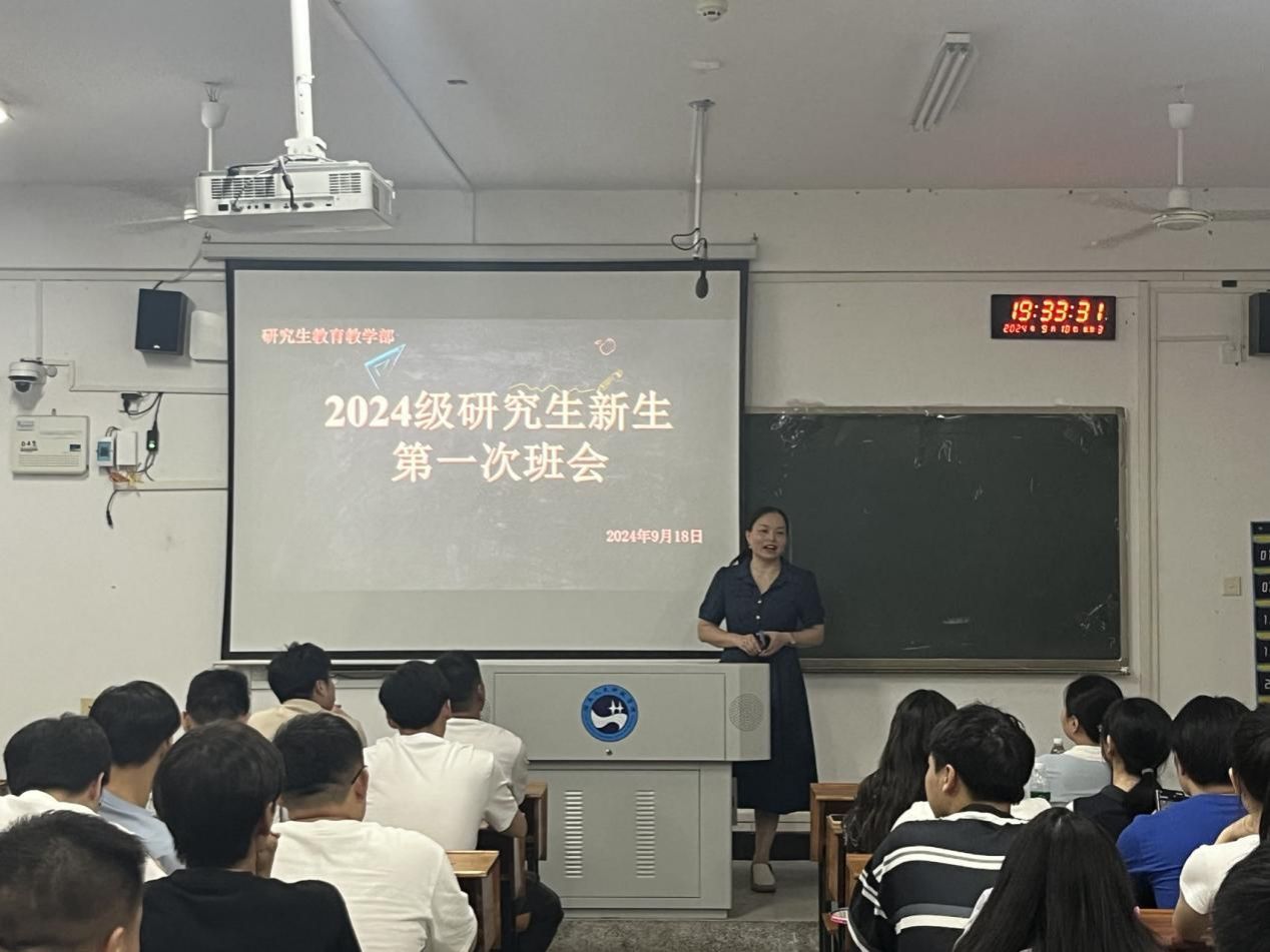 为加强师生之间的交流与沟通,促进研究生新生更快融入校园生活。9月18日晚,研究生教育教学部在致远楼411教室召开了2024级研究生新生第一次班会。班主任老师曾华以及李丹、刘益慧老师参会。