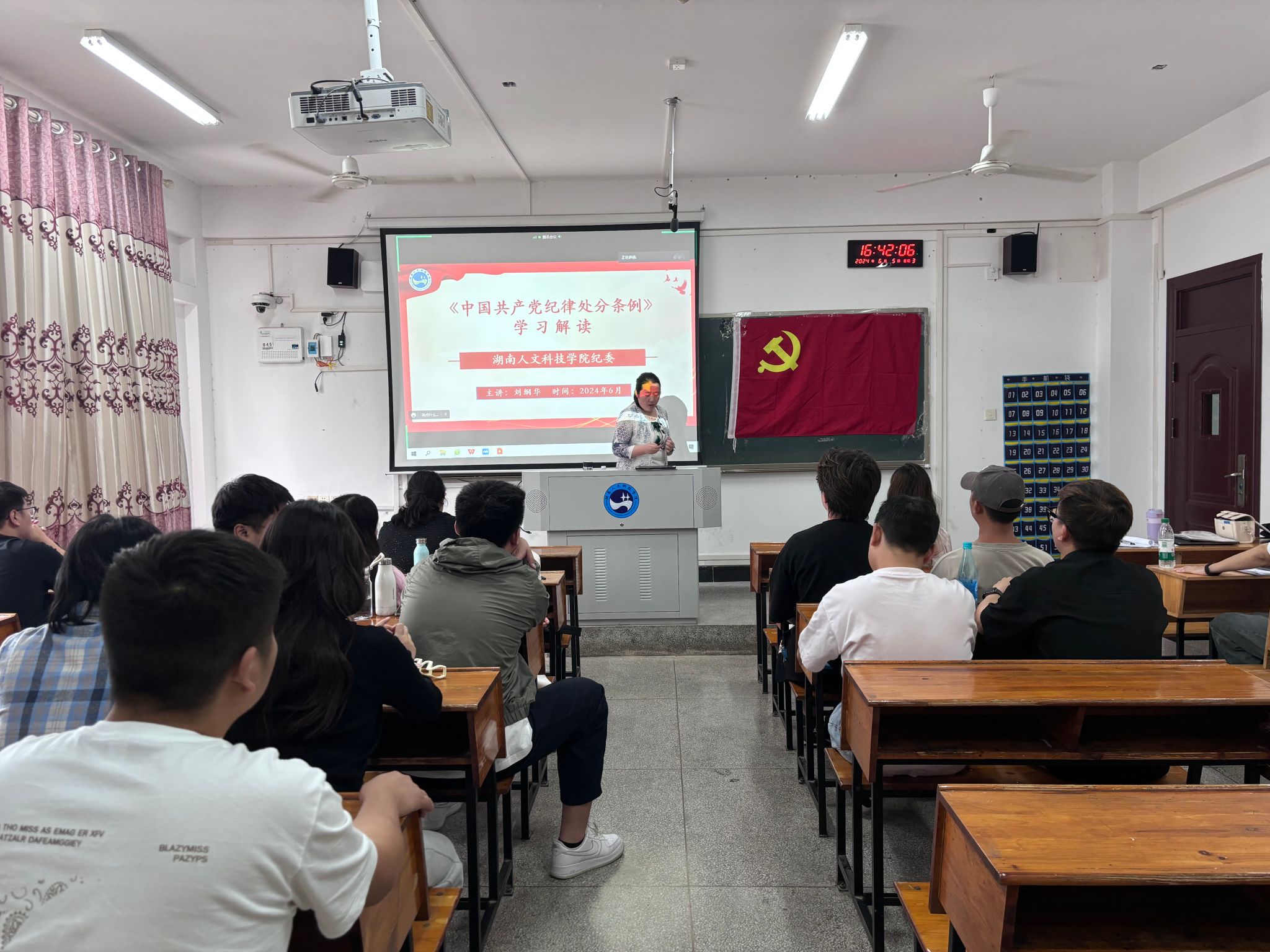 为进一步增强党员纪法观念,持续深入学习《中国共产党纪律处分条例》,6月5日,研究生教育教学部党总支邀请校纪委委员、音乐舞蹈学院刘纲华书记为全体党员讲了一堂生动的专题党课。研究生教育教学部党总支全体党员、预备党员及发展对象参会。