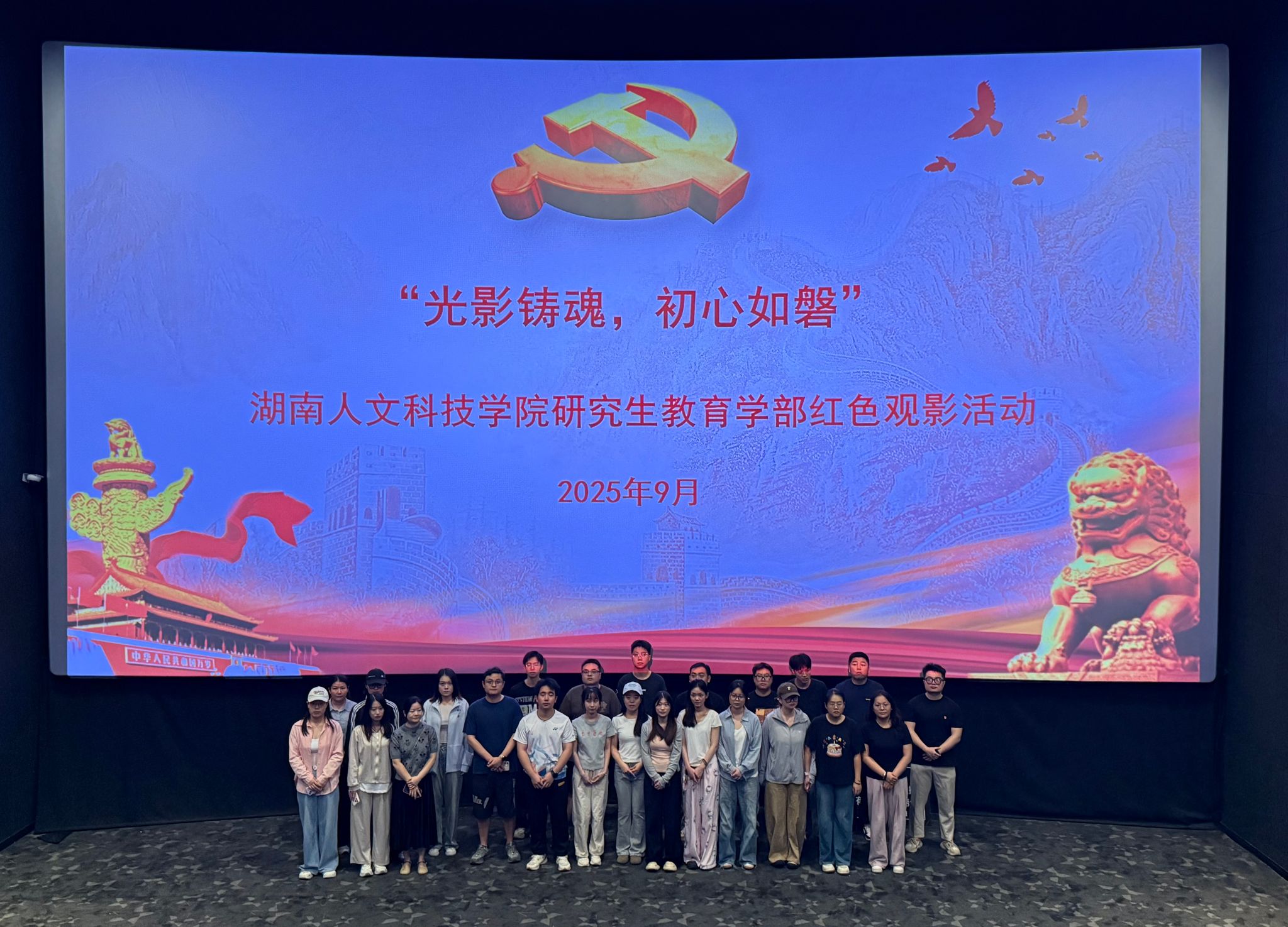 为铭记历史,缅怀先烈,2025年9月19日,研究生教育教学部党组织开展“光影铸魂,初心如磐”主题党日活动,组织2025级研究生新生、领域老师及全体党员共120人观看电影《731》。选择在9.18国耻日后观影,旨在让全体师生深刻铭记94年前日本军国主义发动侵华战争的历史,共同凝视民族的苦难记忆,誓言铭记国耻,砥砺党性。
