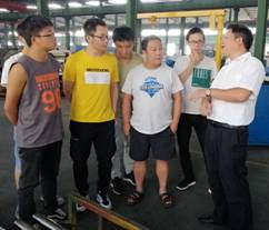 在参观过程中,同学们得到各公司的热情接待,公司专业技术高级工程师给同学们详细讲解了本公司的生产设备、技术水平、行业现状和发展趋势以及农业机械在农业生产中的应用情况等。在生产车间,工程师们介绍了生产设备的加工能力以及设备的加工、装配工艺等。胡东老师现场教学,讲解了信息化、人工智能化等在现代农业机械装备中的应用,告诫学生要学会理论联系实际,培养分析问题和解决问题的能力,要勇于挑战,敢于创新,勤于实践,在研究生阶段收获一个不一样的自己。