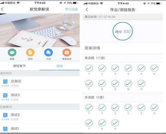 其实,在党课开始的前两天,周发明便在党支部、班级微信群发通知,布置学习任务,要求学员下载好“超星学习通”,以方便当天上党课。他告诉笔者,这样安排的主要原因是希望“以边学边测边互动”的方式让一堂“枯燥”的党课变得更生动,更让学员更容易接受,让学员更容易记牢。