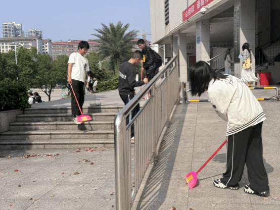 打扫卫生前,同学们积极响应,严格遵守规则,牢记任务要求,准时在逸夫楼下集合。清洁行动中,大家手持工具,分工协作,对小树林、教学楼前坪等区域的垃圾展开清理,就连那些长期被忽略的角落,也在同学们的努力下重焕生机。经此清理,校园环境焕然一新,不仅为学校塑造了优良的卫生环境,更弘扬了志愿服务精神,有力推动了校园环境整治工作,显著提升了学院的环境质量。