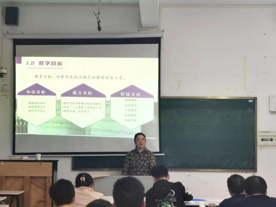 4月13日晚7点半,音乐舞蹈学院在逸音楼303成功举办课程思政教学竞赛活动。本次活动由教学副院长刘利连主持,评委由院领导班子,教学督导及学校有关部门负责人组成。活动伊始,刘副院长就活动的目的、意义以及要求做了详细的说明。参赛老师准备充分,比赛过程精彩纷呈,老师们的博学、自信和授课的严谨博得了评委和学生们的阵阵掌声,