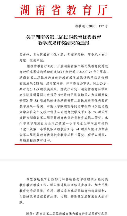 根据近期湖南省教育厅下发的《关于开展湖南省第二届民族教育优秀教育教学成果评选活动的通知》(湘教通〔2020〕72 号),KY官网分管教学副院长刘利连副教授及其团队申报的《少数民族器乐在地方高校音乐教育中的传承与创新研究》荣获湖南省第二届民族教育优秀教育教学成果二等奖,本次获奖进一步促进了KY官网教育教学工作的均衡、协调、高质量发展。