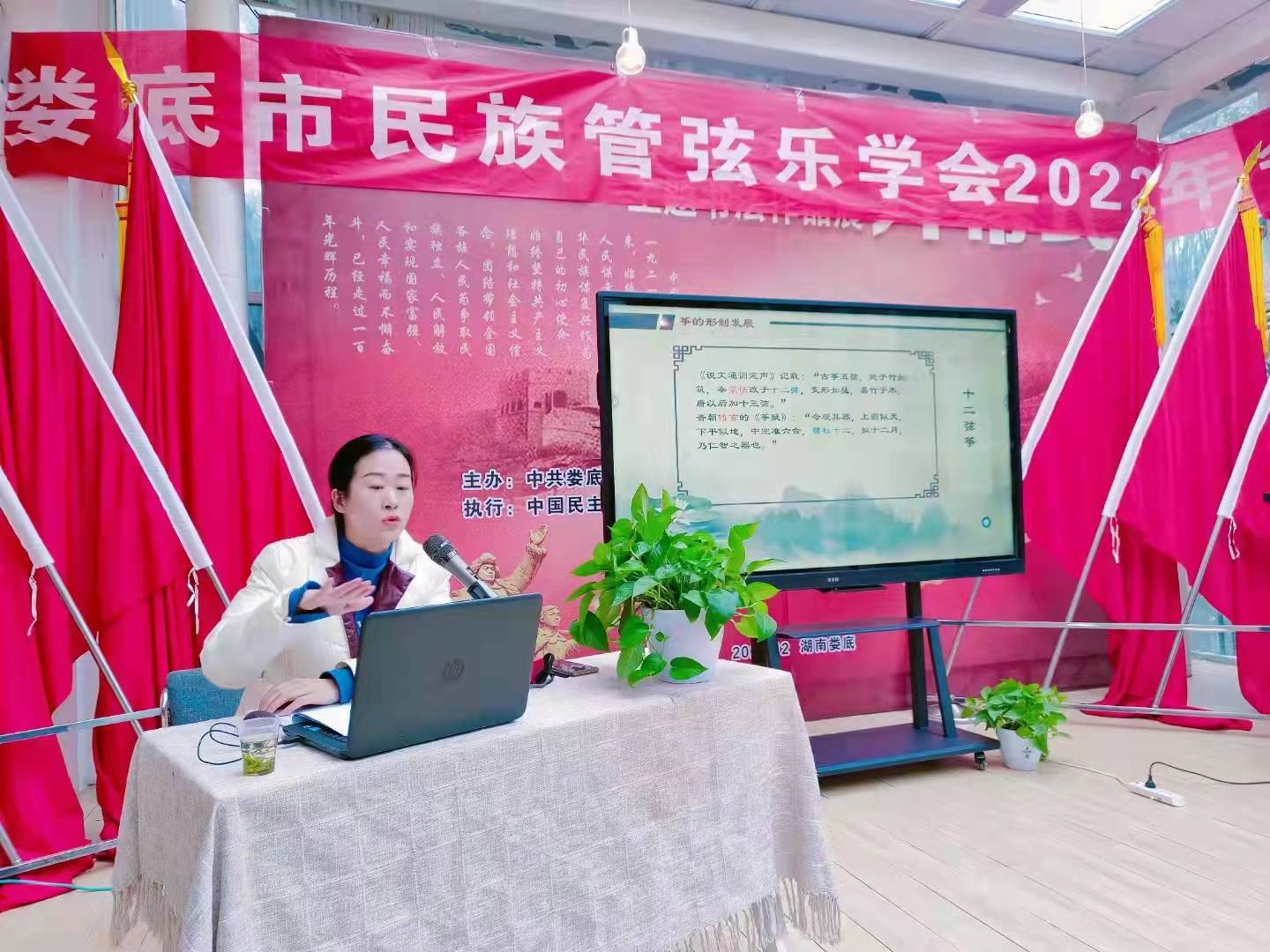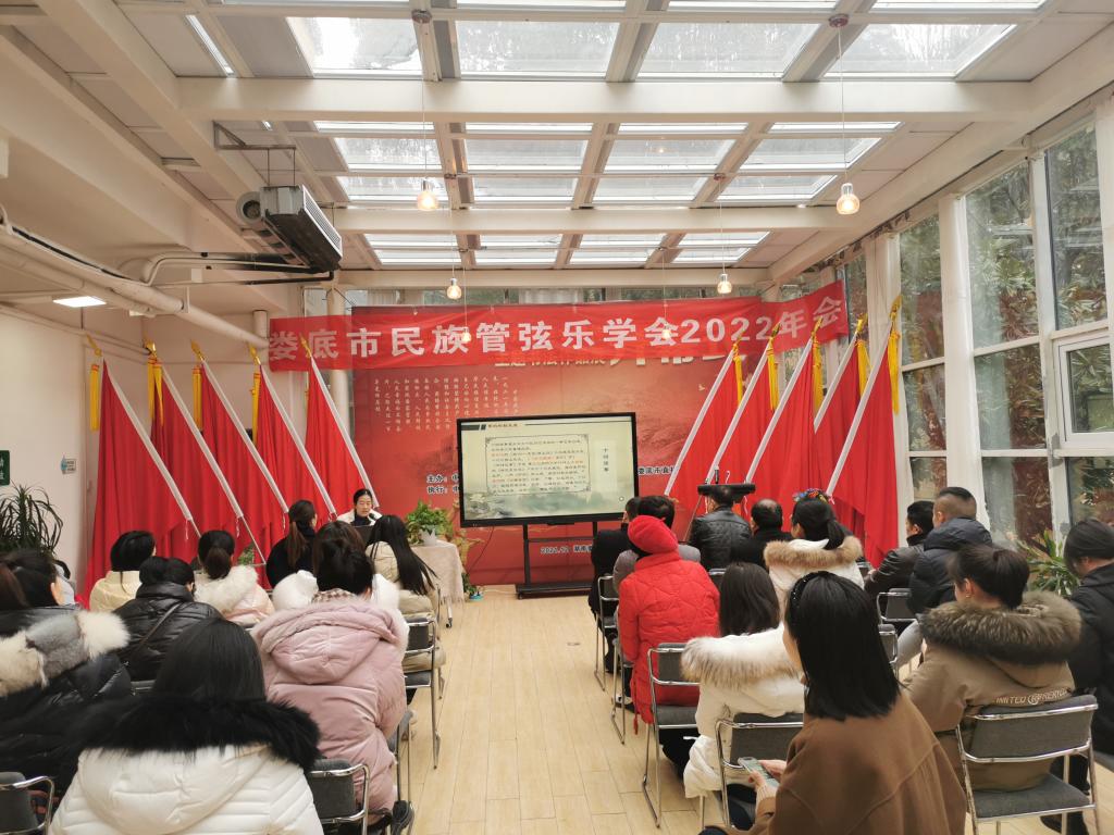 2022年1月10日,音乐舞蹈学院刘利连副院长,应邀为娄底市民族管弦乐学会近百位教师开展《筝乐之美--古诗词里的筝乐文化》为主题的学术讲座。