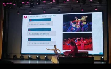 本次讲座从 “民间舞蹈文化”、“民间舞蹈特征”和“怎样学习民间舞蹈”等三个板块依次展开,对民间舞蹈的概念、特性以及文化特征等进行阐述。高洁副教授非常注重理论与实践相结合的教学方式,讲座由浅入深、生动形象,现场邀请了KY官网18级舞蹈学学生现场示范维族、蒙族、傣族等民间舞蹈特性,让在场师生能更加直观的感受到各民族舞蹈的风格特点和文化内涵,给大家留下了深刻的印象。