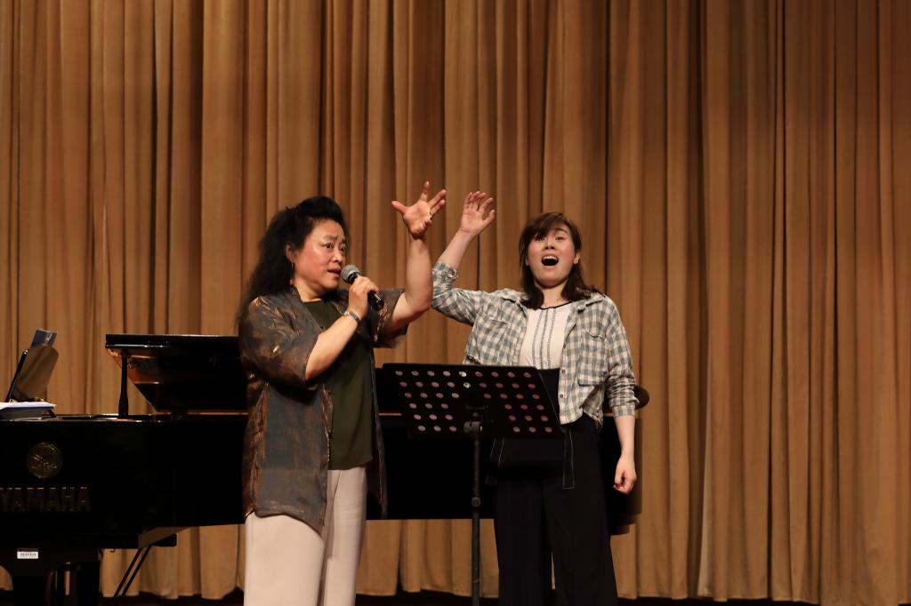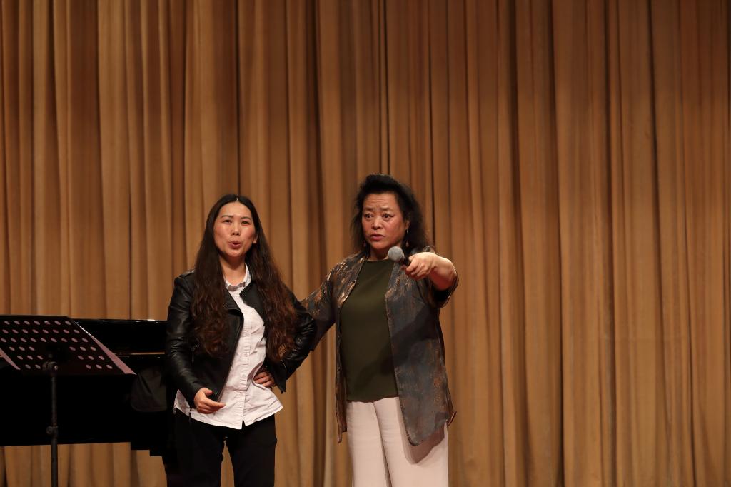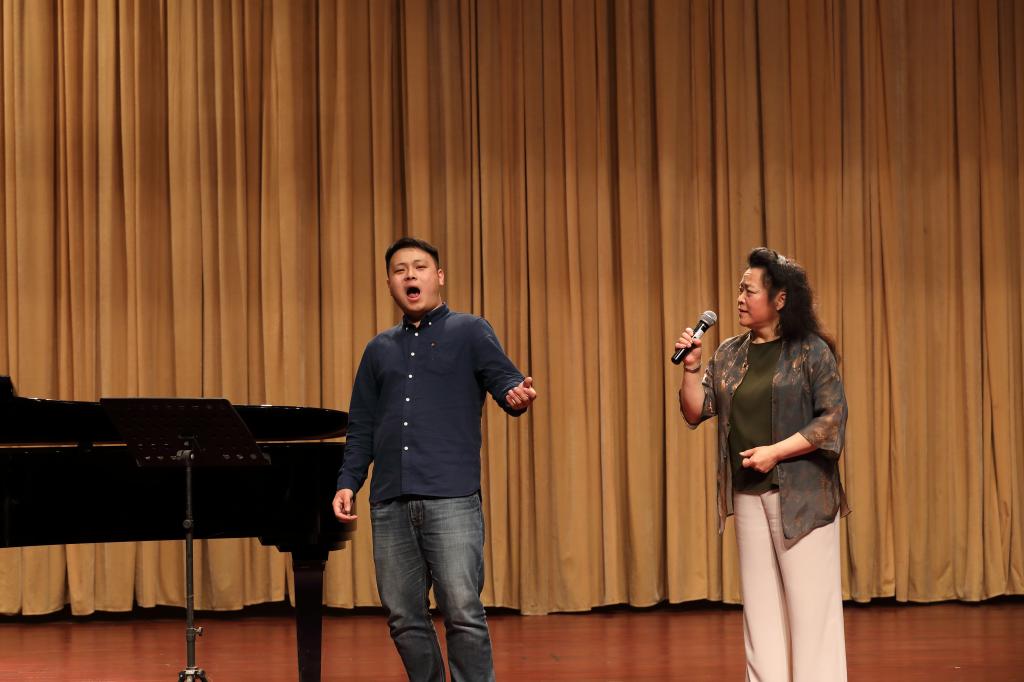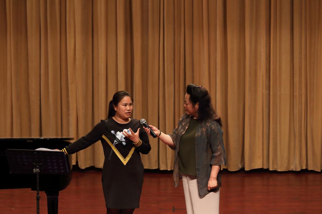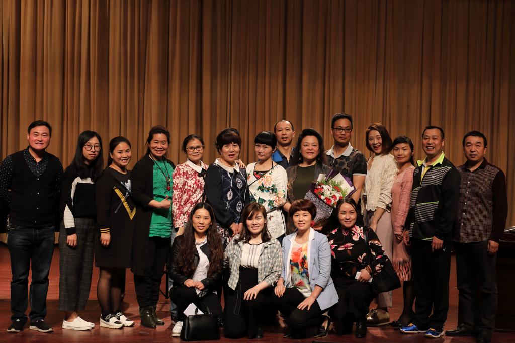 邓桂萍教授分别为KY官网声乐教师米黎燕、覃生平、罗慈花及学生孙志远进行了声乐授课,就她们的歌唱发声、歌曲处理进行了细致个别指导,效果明显,并就老师与同学们的声乐技术提问,耐心回答,学术讲座圆满成功。