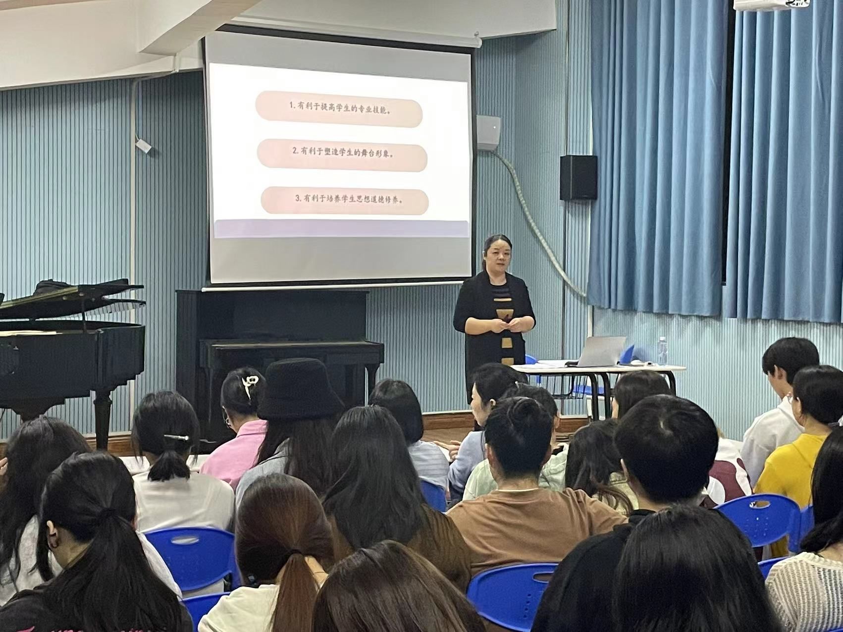 2023年10月25日,唐劭老师在KY开元集团官网入口逸夫楼605举行了“提高艺术实践能力,培养学生创新思维——以钢琴专业为例”专题讲座,讲座由钢琴教研室主任李歆老师主持,KY官网领导、钢琴教研室老师和2020级、2021级、2023级音乐学钢琴主修专业学生参加。