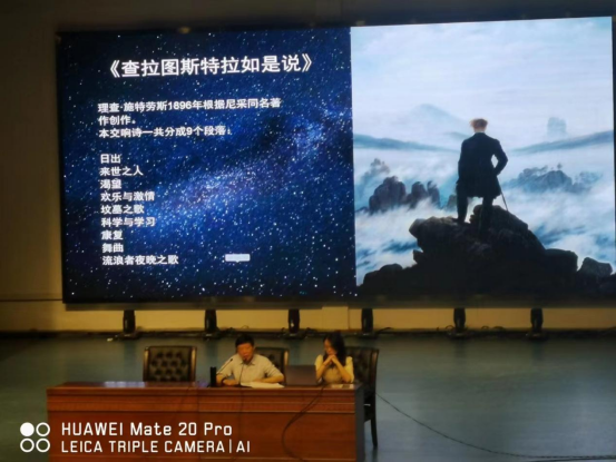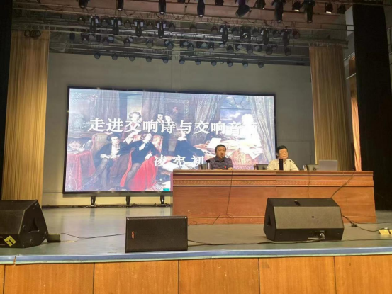 讲座由周邦春院长主持,刘纲华书记、刘利连副院长和邓莉立副书记及部分教师也到场参加。凌教授从欧洲浪漫主义时期兴起的文化思潮讲起,由文化思潮延伸到音乐作品,再引入浪漫主义时期交响诗体裁的主题内容,阐述了交响诗和交响音画的内涵以及特点。在教授的生动介绍之后,学生们兴致勃勃地欣赏了俄罗斯作曲家鲍罗丁的交响音画《在中亚细亚草原上》、捷克作曲家斯美塔那的交响诗《伏尔塔瓦河》、德国作曲家理查·施特劳斯的交响诗《查拉图斯特拉如是说》以及李斯特的交响诗《前奏曲》等经典的欧洲音乐作品。凌教授以其渊博的学识、生动的语言、严谨深入的治学态度都给学生留下了深刻的印象。