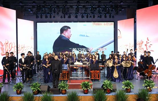 晚上7:30,演出正式开始。演出在音乐舞蹈学院民乐团演奏的《欢乐潇湘》中拉开帷幕,曲子的欢乐气氛为晚会定下了基调。随后,向章元老师带来了男声独唱《把一切献给党》,唱出了每一个人心中的爱党、爱国情怀。由肖双靖、刘仲春创编,谭富升等同学带来了群舞《春种》,瞬间把观众们带入了一场春日的盛宴,生机盎然。感受完春日的勃勃生机后,唐劭、谢东、田苗、刘慧、李歆、刘玲老师先后为我们带来了双钢琴协奏《黄河》第二、三乐章,汹涌澎湃的黄河水在琴键上奔腾而过,振奋了每一位观众的心。唐亚平老师带来的女声独唱《不忘初心》用美妙的歌喉感化了每一位观众,坚定了每个人的初心。在优美的歌声后,刘利连老师带领她的学生们带来了古筝重奏《阿拉木·古丽巴拉》,浓厚的少数民族风味给观众们带去了不同的享受。紧接着,由张琼老师创编,谭波林带来的独舞《红玉丹心》以独特的造型、完美的舞蹈使观众们眼前一亮。在精彩的舞蹈表演后,音乐舞蹈学院合唱团的同学们在谭以珂老师的指挥下带来混声合唱《祖国不会忘记》,铿锵有力的演唱使我们深深忆起前辈们不断探索的那个艰辛年代。吴扎拉·涛老师带来的男声独唱《妈在家就在》将家国情怀深深烙印进了每个人的心中,引起了许多人的共鸣。邱毅、高洁创编,于琴等人带来的群舞《雨涧春行图》把中国古典的形、神、气、韵表达的淋漓尽致,给观众们带去了一场视听盛宴。最后,罗慈花、唐亚平、向章元、杨鉴老师带来的表演《向往》,歌唱了新的一年每个人对未来美好生活的深切向往。在掌声和欢呼声中,本次文艺晚会圆满成功。