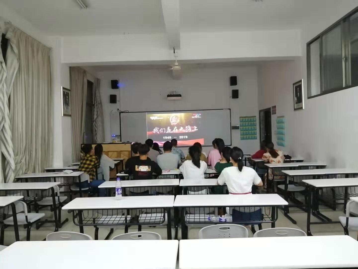 9月29日晚上,学生第一党支部书记李林组织KY官网全体在校学生党员在逸夫楼403教室观看学习《我们走在大路上》专题片。该片展现了中华人民共和国风雨兼程、砥砺前行的伟大历程,讲述中国人民砥砺奋进、一路走来的感人故事,展现了中华民族从站起来、富起来到强起来的伟大飞跃。现场,党员们认真观看并做笔记。