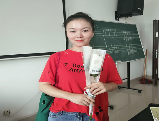活动即将开始,班级的同学早早的来到了教室,在等待音乐舞蹈学院老师的到来。当老师走上讲台,教室里想起了雷鸣般的掌声,大家群众起立,向老师深深鞠了一个躬,并大声一致说:“老师,节日快乐!”随后,学生代表手捧鲜花走上讲台,微笑着向老师敬礼、献花。朵朵鲜花,表达了全班学生对老师的敬意和节日的祝福,深深感谢老师们的教育之恩。此时,鲜花飘香,掌声阵阵,教室了呈现出一派喜庆热烈的气氛。老师既惊喜又感动,语重心长的对同学们说:“谢谢大家,教书育人是老师的职责,期望同学们能够把对老师的这份感激之情转化为今后学习的动力,将来学业有成,回报社会。”