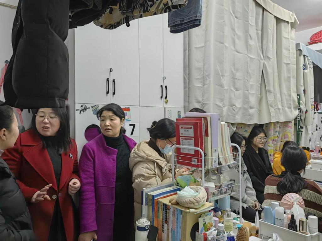 (李霞副部长与邓莉立副书记一道走访学生宿舍)