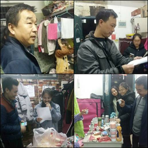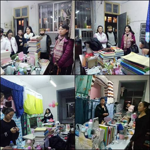 查寝活动从九点半开始,老师们一个个宿舍的走访排查,对用电安全和防火等方面进行了强调,收缴了热得快等大功率电器,要求各位同学注意防火,不在寝室抽烟,使用任何火源,做到人走关电,消除各种寝室安全隐患。各位班主任对晚归未归同学进行情况了解,批评教育,坚决禁止私自校外住宿。