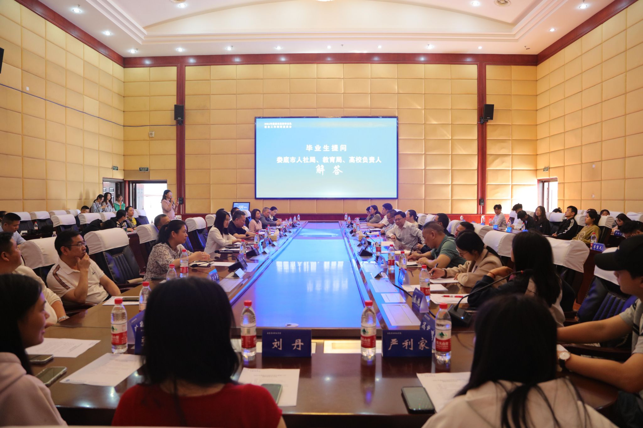 随后,刘文波、李静分别代表市相关职能部门发言。在交流环节上,毕业生代表围绕就业创业过程中遇到的困难困惑,以及需要哪些帮助谈了想法和建议。市人社局、市教育局、高校负责同志分别根据学生提出的问题及意见建议进行了解释与答复。