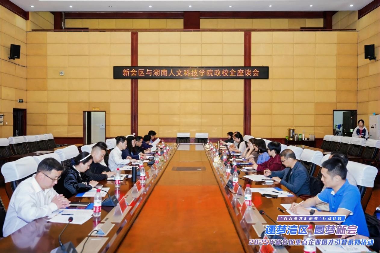 3月27日,为深化校政企合作,助力粤港澳大湾区人才引进,广东省江门市新会区在KY官网图书馆一会议室、二会议室分别召开了“逐梦湾区·圆梦新会”招才引智宣讲会暨政校企座谈会。新会区人社局党组成员、副局长何赟,学校党委委员、副校长谭峰亮,新会区及KY官网相关工作负责人、部分企业代表参加。会议由招生就业处处长刘红燃主持。座谈会上,谭峰亮对新会区人社局及企业代表的到来表示热烈欢迎,并介绍了学校的办学特色、人才培养模式及近年来在校企合作方面取得的成果。谭峰亮表示,学校始终坚持应用型人才培养定位,积极对接区域经济发展需求,希望通过此次合作,进一步拓宽毕业生就业渠道,同时为新会区产业发展提供人才支撑。